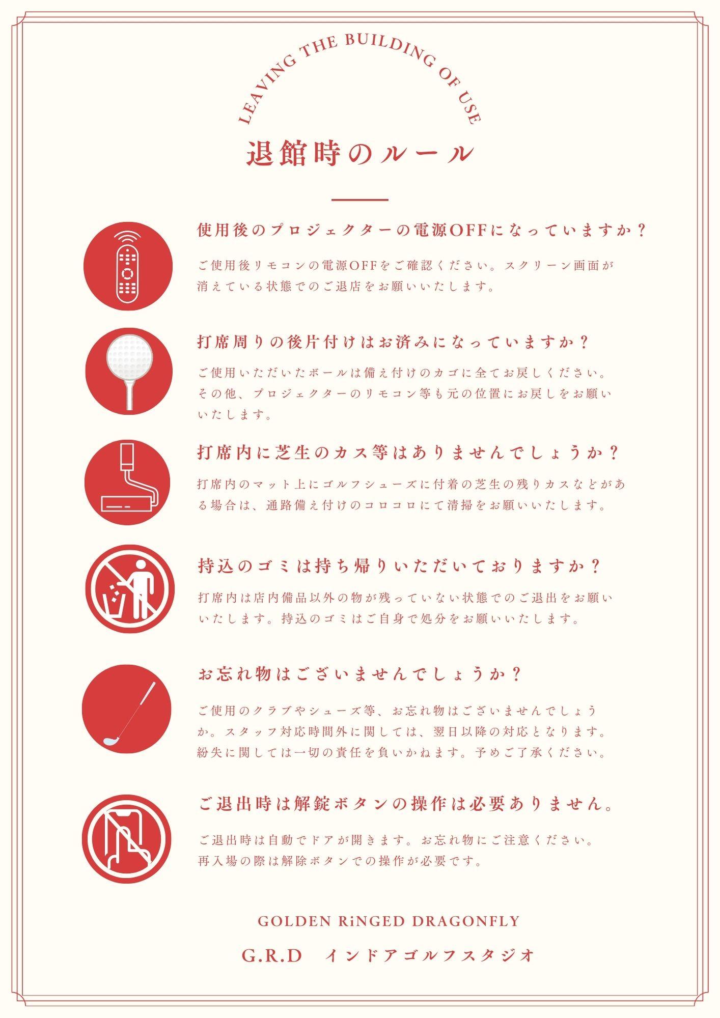 ご退館時のルールをご確認いただきご退館ください。